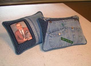 Memorial Pillow We make these out of your loved ones clothes, send the clothing and a picture. This one was made out of the man's cover-alls |